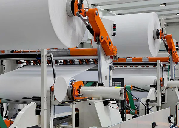在無紡布生產線上,機械設備通常需要進行開松、梳理、鋪網、熱軋、卷取等多個連續工序...